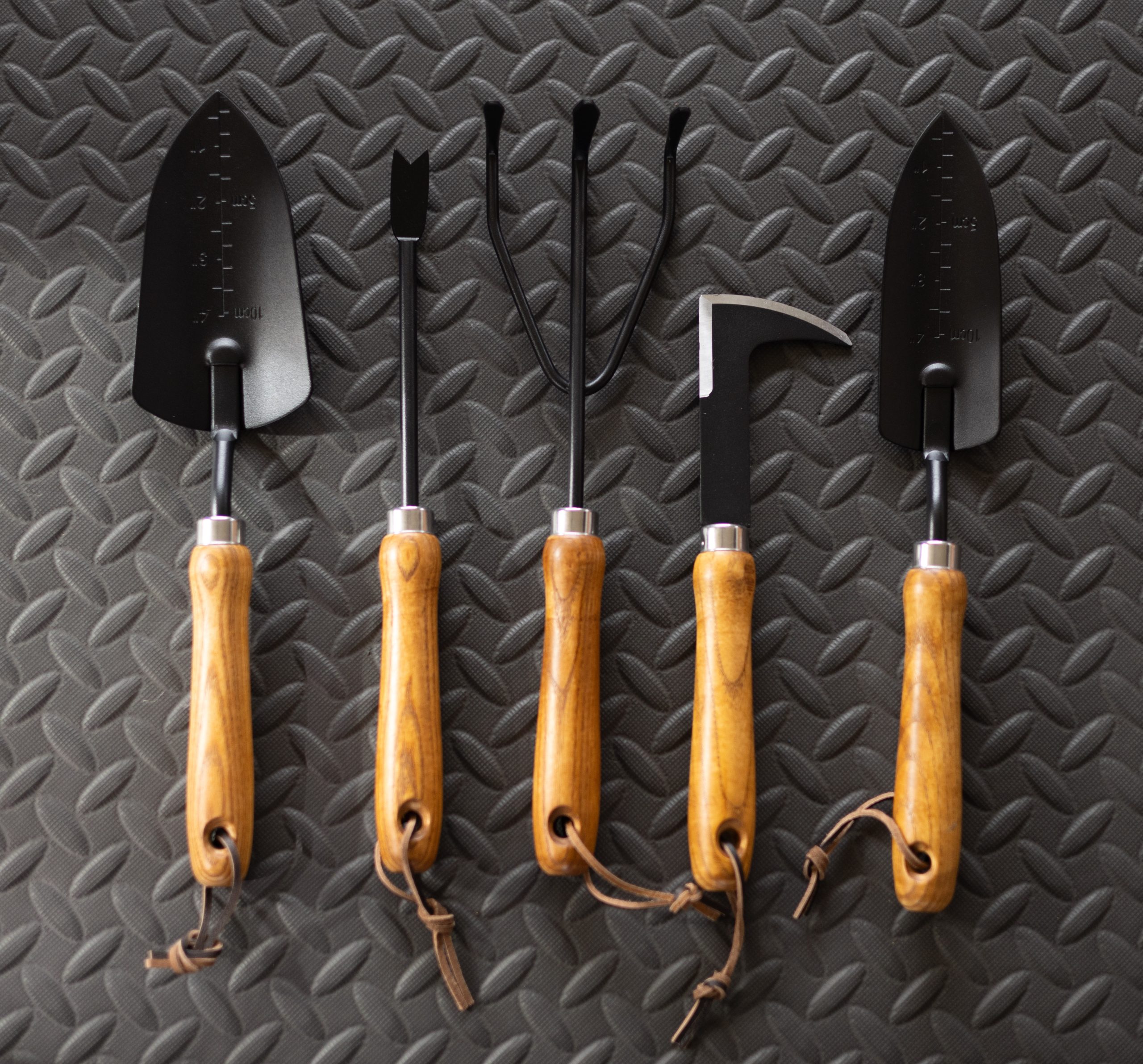 6-piece garden tool set is well made and durable for gardening year round. Solid wooden handles are made from Cedar trees. Carry bag is included in the set.
